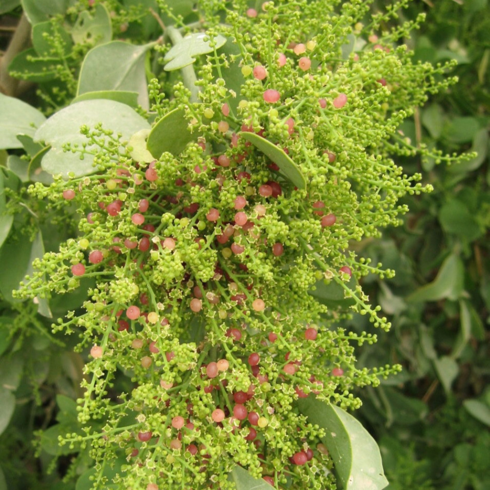 بالأضافة لكل هذه المنافع والمميزات هذه الشجرة مثمرة وثمارها تشبة التوت البري، كروية الشكل وصغيرة لونها أحمر يغمج ويميل للبنفسجي كلما نضجت، ذات طعم حلو يميل للحموضة، تحتوي على مضادات أكسدة وفيتامين سي وحديد بنسب جيدة، تستخدم طازجة ويتم تجفيفها قديماً لتستخدم كمنكه في المطبخ